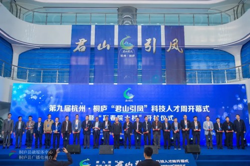 11月8日,第九届杭州•桐庐“君山引凤”科技人才周开幕式暨“富春院士村”开村仪式在桐庐科技孵化园举行。