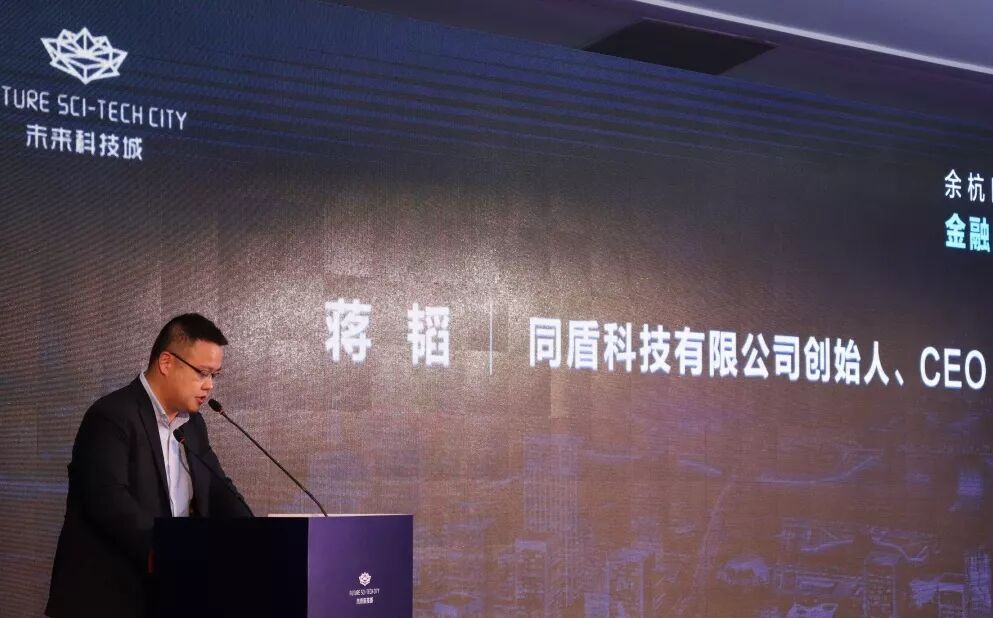 未来科技城管委会人才与金融服务中心主任徐来莹-同盾科技董事长蒋韬-银行代表(中国工商银行股份有限 公司杭州科创支行、浙商银行股份有限公司杭州未来科技城 支行、杭州银行股份有限公司海创园支行、上海浦东发展银行股份有限公司杭州余杭科技城支行)进行合作搭建余杭区中小微企业金融服务平台签约仪式。