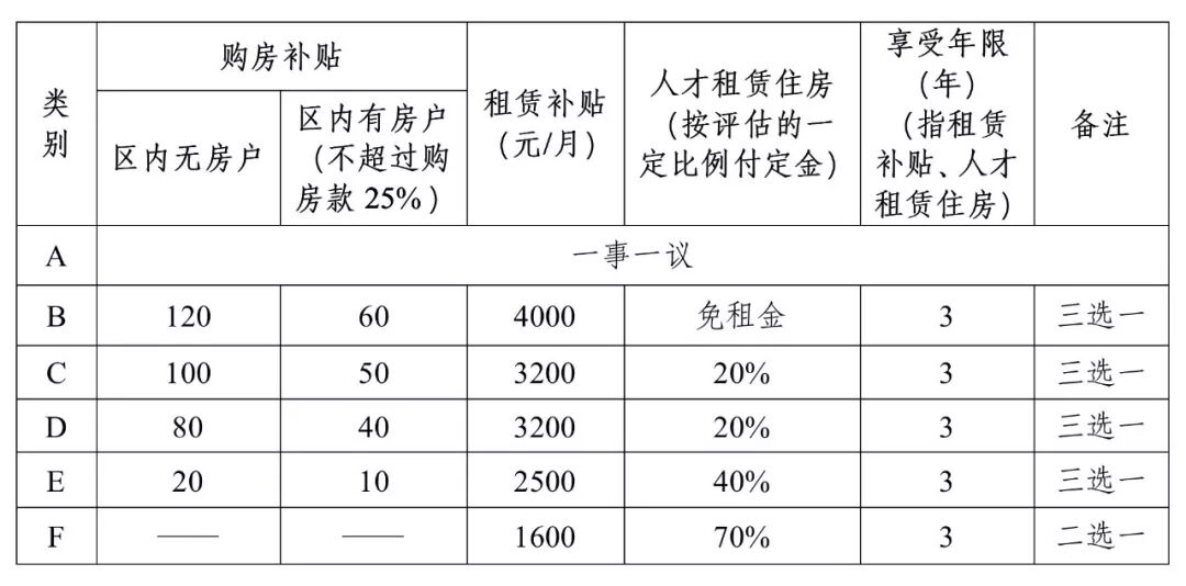 注: 1.千人、万人计划人才住房政策另行制定;教育、卫生、文化人才按各自人才政策享受相应的住房优惠政策。